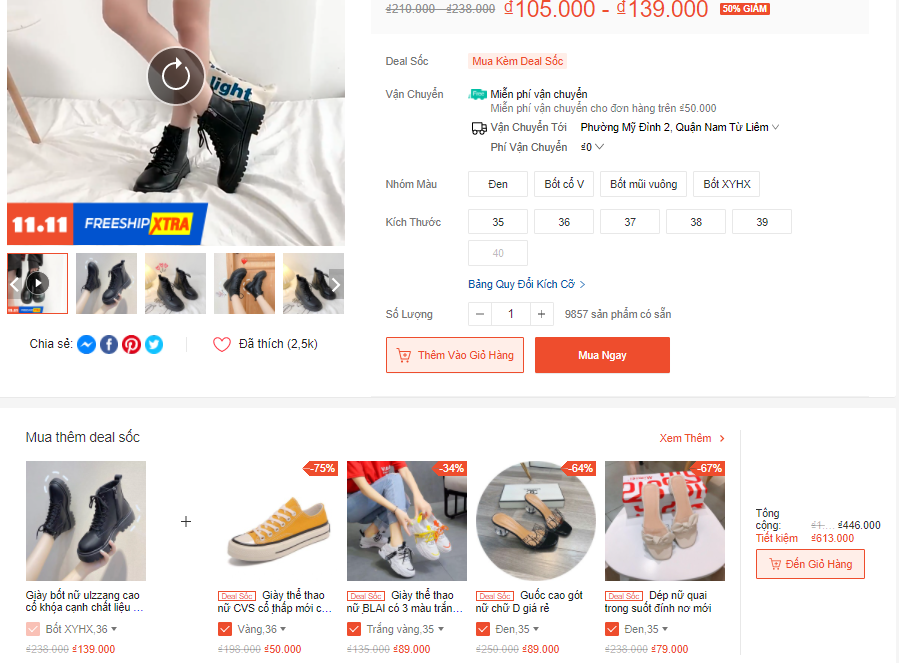 + Để tối ưu Mua kèm deal sốc Shop nên áp dụng cho các sản phẩm có chức năng bổ sung cho nhau. Ví dụ: Dầu gội + Dầu xả, Ốp lưng + Dây sạc điện thoại...