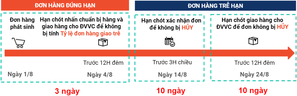 • Thời hạn nhấn chuẩn bị hàng để không bị tính Tỷ lệ đơn hàng giao trễ: 3 ngày
