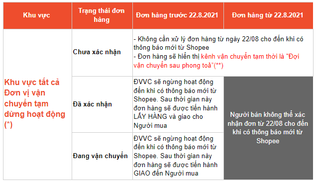 Đối với những đơn hàng có địa chỉ lấy/ giao hàng thuộc khu vực tất cả đơn vị vận chuyển tạm dừng hoạt động thì: