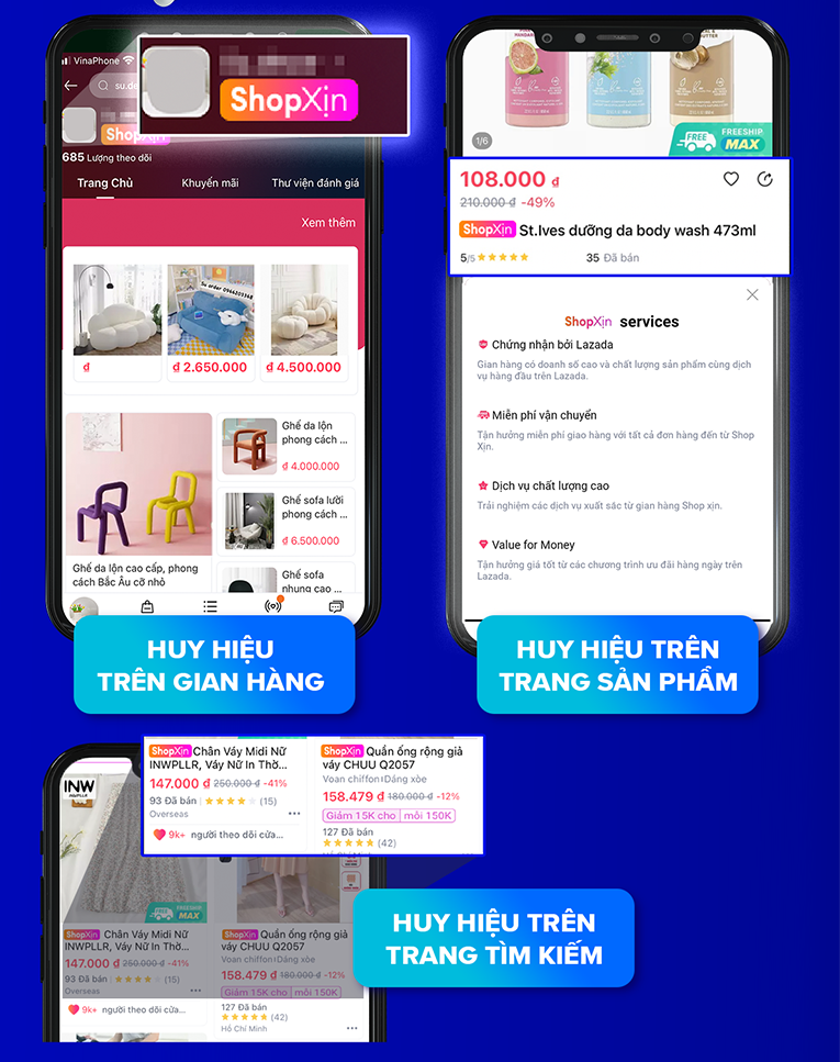 - Sẽ được gắn huy hiệu Shop Xịn trên Trang gian gian hàng, Trang giản phẩm và Trang tìm kiếm để tăng khả năng hiển thị và giúp khách hàng tìm thấy bạn dễ dàng hơn.