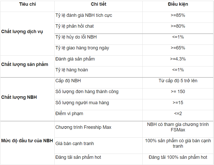 Để được mời tham gia chương trình, nhà bán hàng cần thỏa mãn những điều kiện sau: