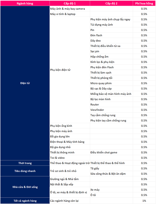 Kể từ ngày 01/03/2022, Lazada sẽ chính thức áp dụng mức phí hoa hồng dành cho các NBH Shop Xịn 2.0. Mức phí này chưa bao gồm thuế giá trị gia tăng và được áp dụng trên mỗi đơn vị sản phẩm giao hàng thành công, chi tiết như sau: