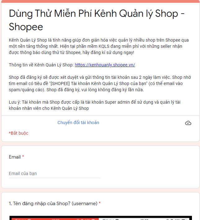 4. Hướng dẫn cách tạo tài khoản để sử dụng Kênh quản lý Shop