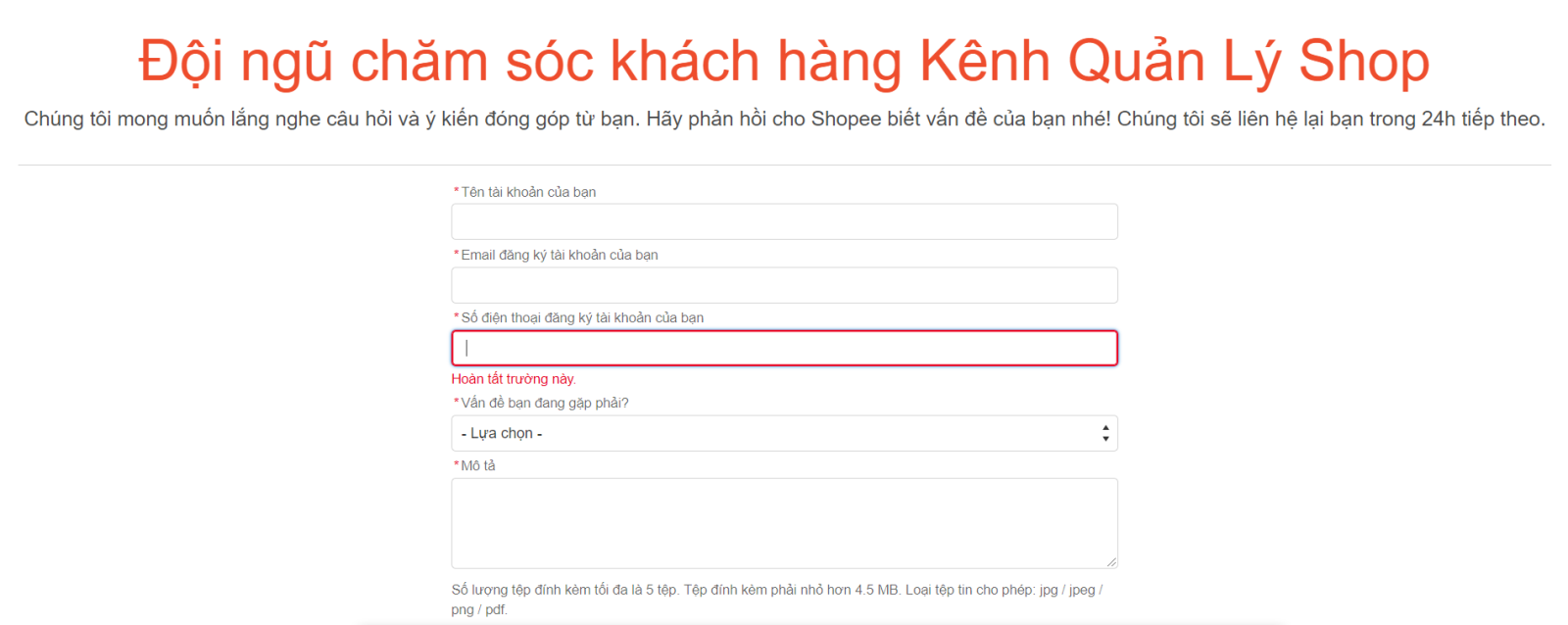 Bạn truy cập vào Kênh quản lý Shop, nhấp vào mục nhập phía bên phải của trang chủ và điền vào biểu mẫu hỗ trợ.