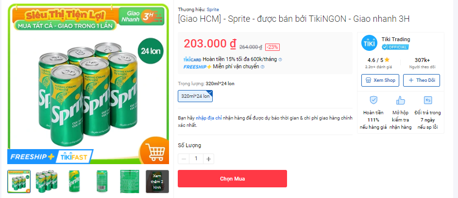 Tên gian hàng sản phẩm không được chứa tên sàn TMĐT Tiki hoặc các sàn TMĐT khác.