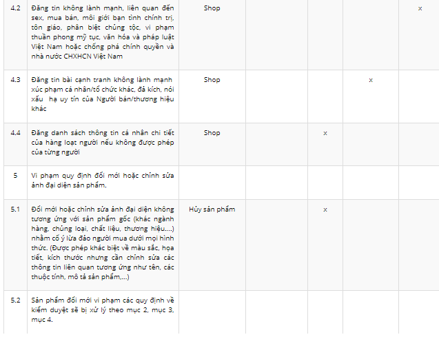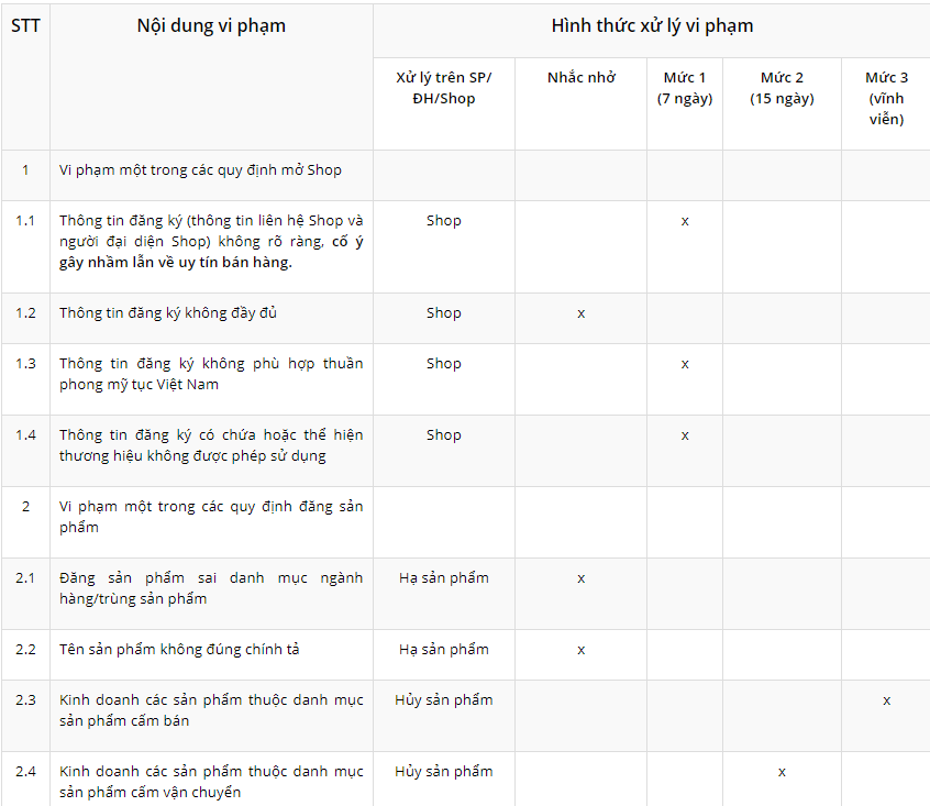 1. Các vi phạm về quy định mở shop và đăng tin sản phẩm