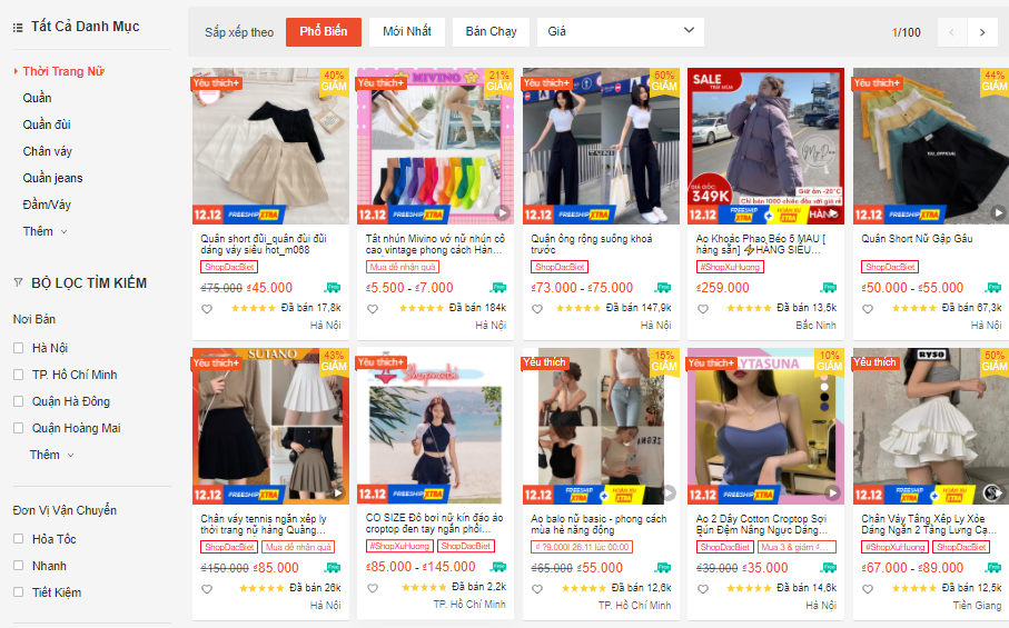 Tại đây bạn có thể click vào mục Phổ biến để xem các sản phẩm được các shop đăng bán nhiều nhất và mục bán chạy để xem sản phẩm được người dùng mua nhiều nhất.