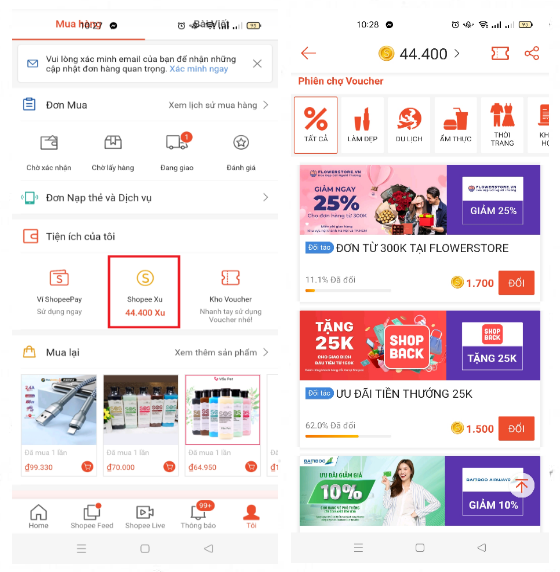 Voucher được quy đổi bằng Shopee Xu sẽ được tự động lưu lại trong kho voucher trên tài khoản Shopee của bạn
