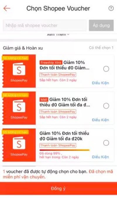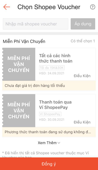 Nếu mã miễn phí vận chuyển chỉ áp dụng cho hình thức thanh toán qua ShopeePay. Bạn nên thanh đổi hình thức thanh toán khi mua hàng để được có thể áp dụng được mã Freeship nhé.