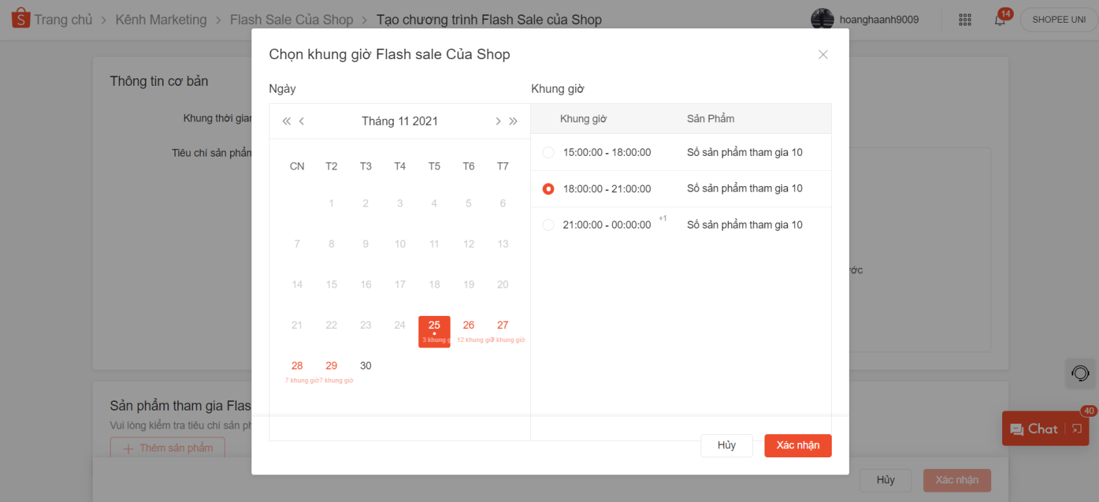 1. Thời gian tạo Flash sale Shopee