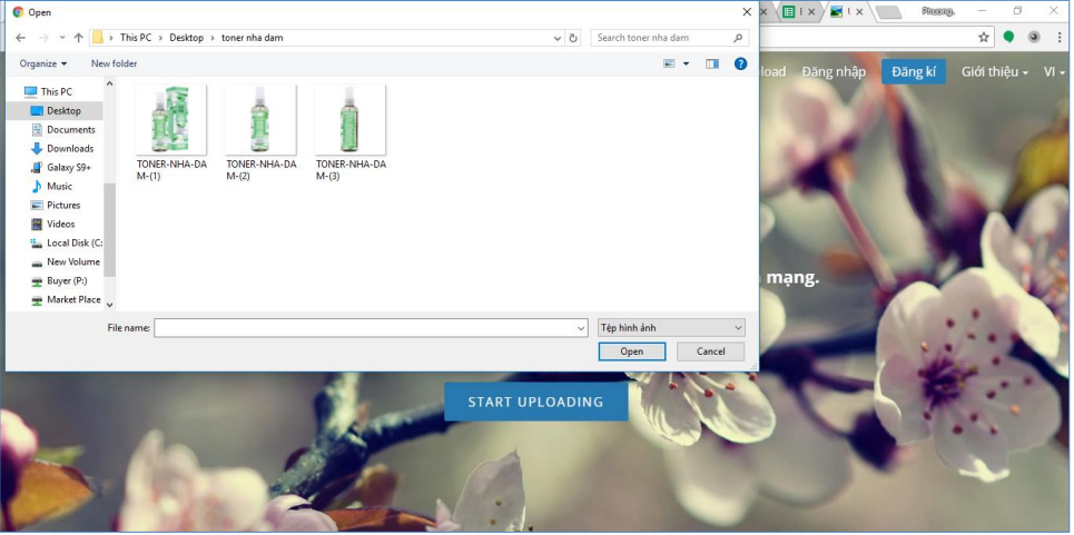 Bước 2: Click “Start Uploading” và chọn hình muốn up (có thể chọn một lần nhiều hình)
