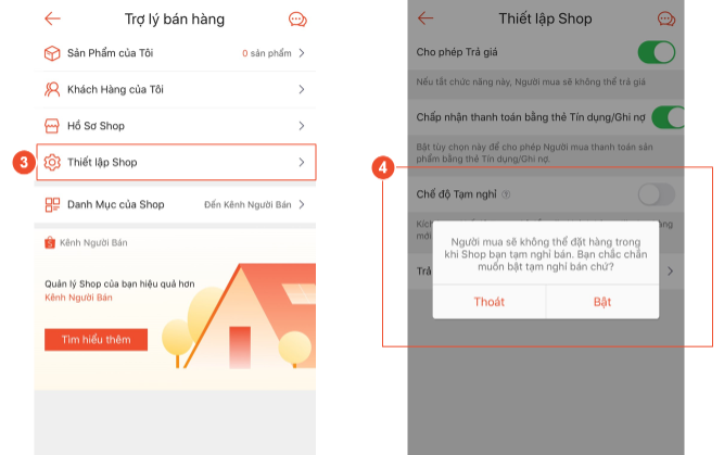 Lưu ý: các đơn hàng phát sinh trước khi bật chế độ tạm nghỉ shop cần phải xử lý và giao hàng đến cho người mua.