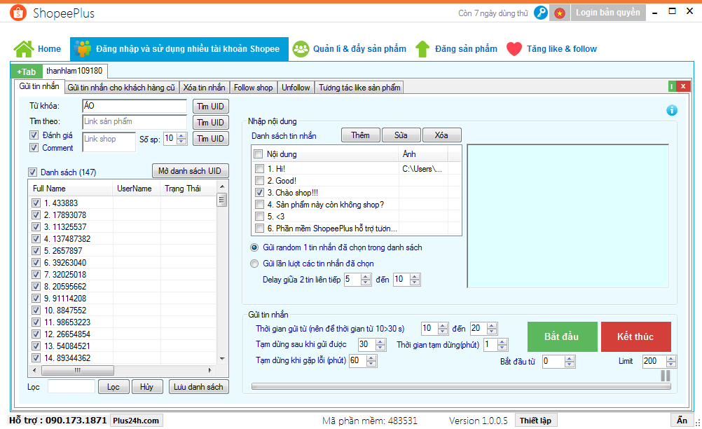 PHẦN MỀM GỬI TIN NHẮN CHO KHÁCH HÀNG SHOPEE