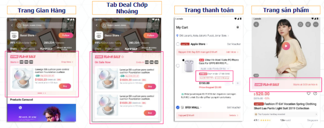 2. Deal chớp nhoáng gian hàng được hiển thị ở những vị trí nào?