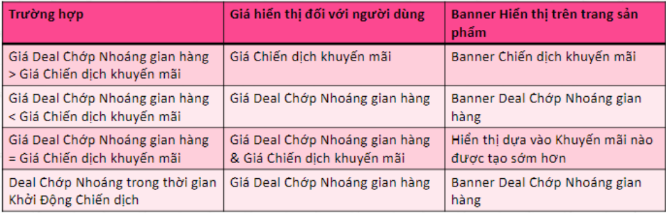 Logic hiển thị giữa Deal chớp nhoáng gian hàng và chiến dịch khuyến mãi đó là: