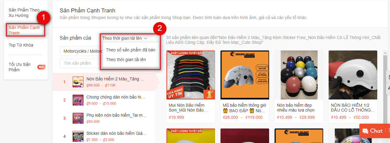 Sản phẩm cạnh tranh hiển thị danh sách các sản phẩm trên Shopee có sự tương đồng và đang cạnh tranh với sản phẩm của Shop, giúp Người Bán tìm ra những điểm cần cải thiện về giá cả, hình ảnh và nội dung sản phẩm từ đó giúp người bán có thể dễ dàng đưa ra những ưu đãi với mức giá thấp hơn hoặc đưa ra các chiến lược tiếp thị để thu hút nhiều người mua hơn so với đối thủ cạnh tranh của mình.