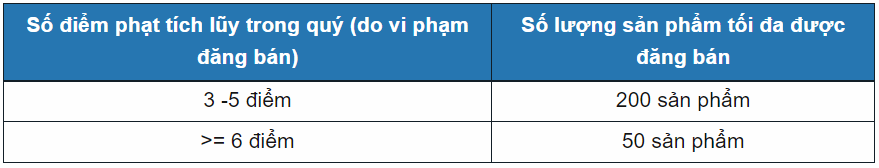 Ngoài ra, số lượng sản phẩm tối đa mà shop được đăng bán còn phụ thuộc vào hệ thống sao quả tạ mà cụ thể là số sao mà shop bị chiếu.