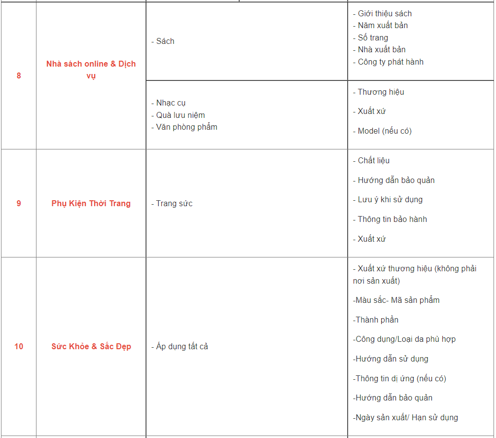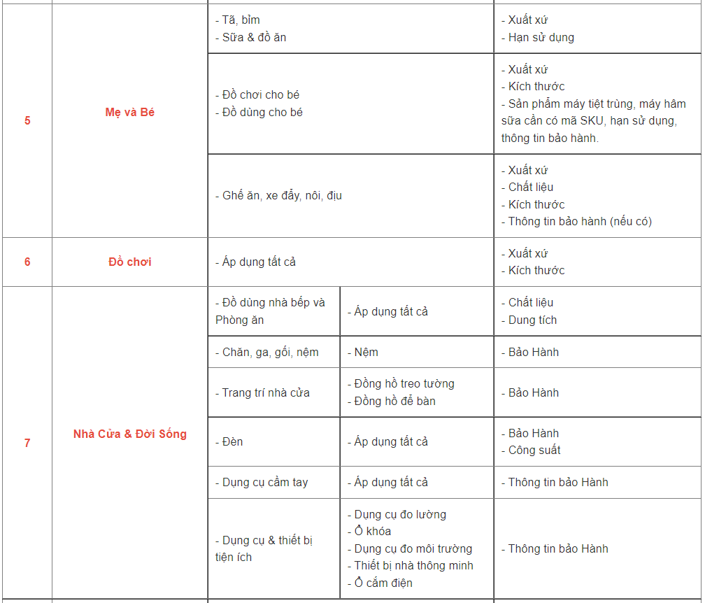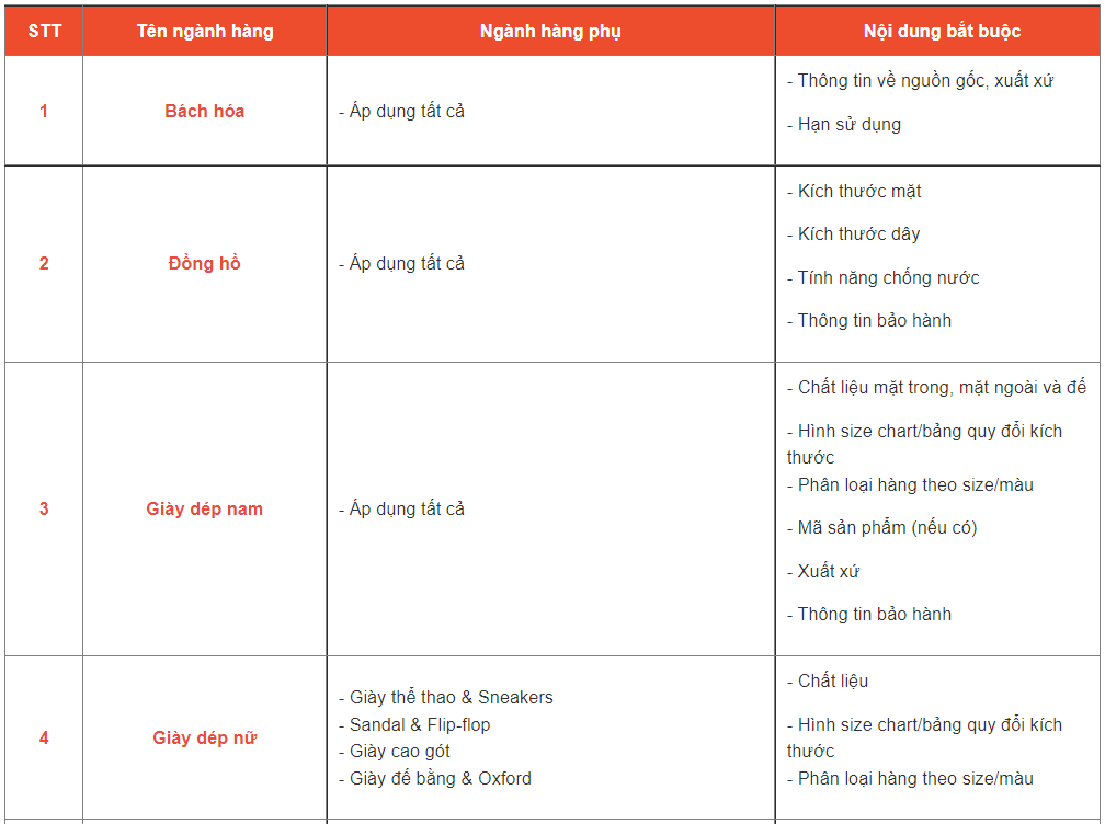 2. Quy định về nội dung đăng bán từng ngành hàng trên Shopee Mall