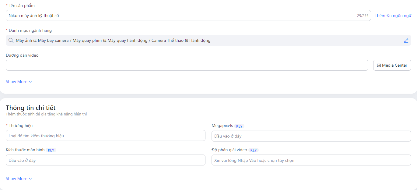 Đảm bảo rằng bạn phải điền đầy đủ tất cả thuộc tính bắt buộc liên quan đến sản phẩm. Lưu ý là trong phần đăng tải sản phẩm, tất cả những phần nào được đánh dấu * màu đỏ đều là những phần mà bạn bắt buộc phải điền.