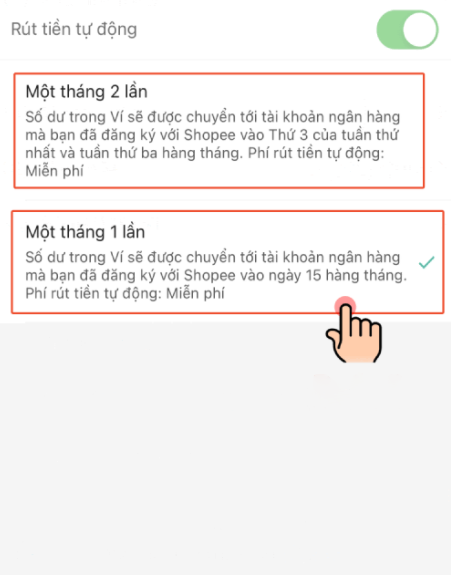 Tại Ứng Dụng Shopee chọn Số dư TK Shopee => chọn biểu tượng cài đặt => gạt nút xanh để kích hoạt Rút tiền tự động trong Cài đặt số dư Tài khoản Shopee.