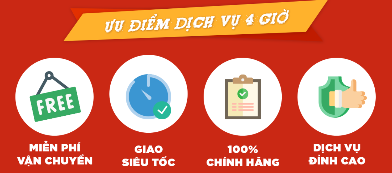 Khi bạn mua những sản phẩm mà được hỗ trợ dịch vụ giao hàng 4h. Thì sẽ nhận được rất nhiều ưu đãi như: