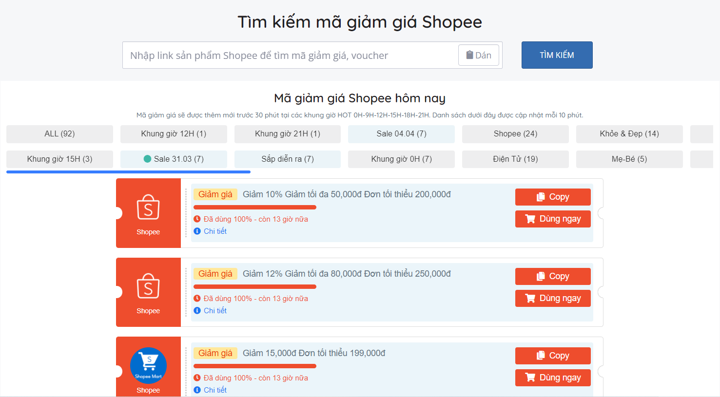 Tìm mã giảm giá trên Shopee