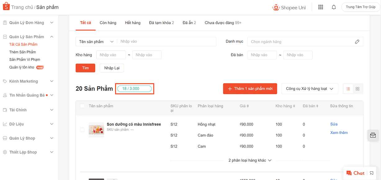 3. Kiểm tra giới hạn sản phẩm đăng bán trên Shopee
