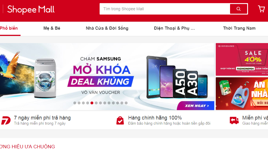 Truy cập: https://shopee.vn/mall để tìm kiếm các sản phẩm thuộc ShopeeMall.