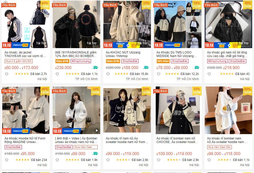Ví dụ các sản phẩm như quần bò, váy hoa, áo khoác là từ khoá khách hàng tìm kiếm nhiều trên sàn thương mại Shopee.