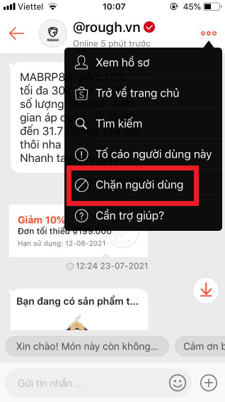 Để đảm bảo sự minh bạch và tăng độ tin cậy cho shop và người mua tại shopee. Người bán nên báo cáo các trường hợp liên quan đến các hoạt động quảng cáo cung cấp dịch vụ buff chỉ số ảo với Shopee bằng cách: Shop vui lòng báo cáo tài khoản này ngay lập tức thông qua tính năng hỗ trợ tại khung chat >> nhấn vào 3 chấm >> chặn người dùng này để tránh làm phiền.