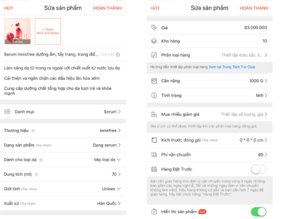 Khi các thông tin được cập nhật đầy đủ trên trang sản phẩm sẽ giúp người dùng hiểu rõ hơn về sản phẩm và tăng độ tin tưởng về chất lượng sản phẩm đăng bán tại shop.