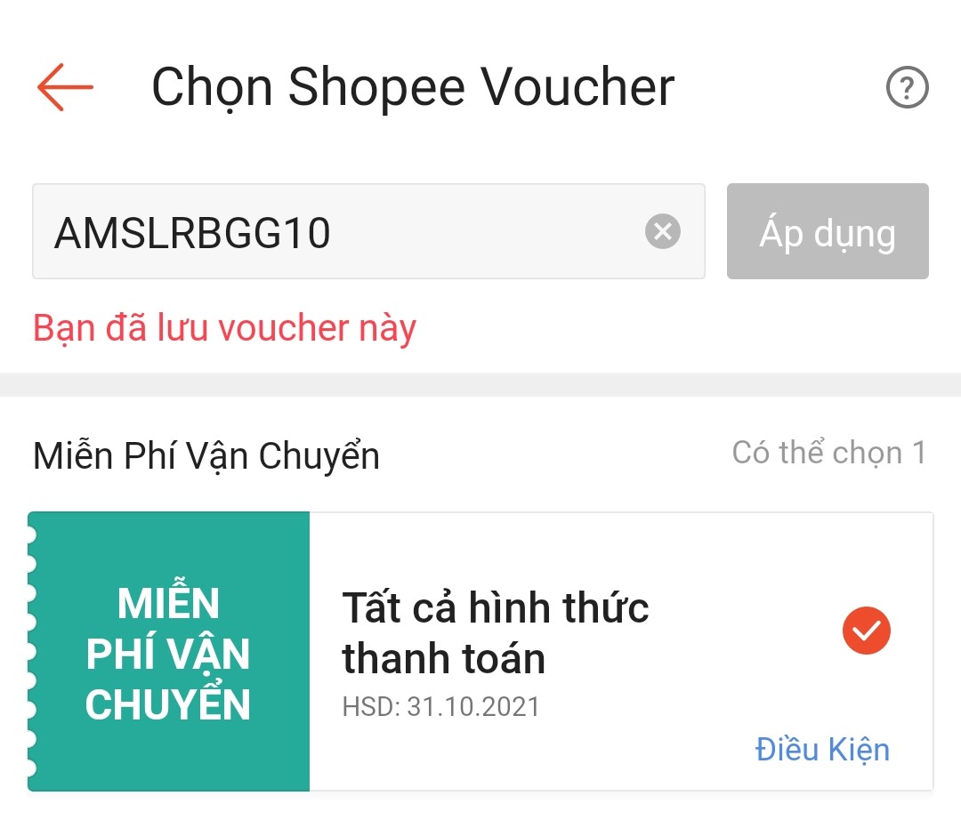 Sau khi, đã nhập mã giảm giá vào ô “Nhập mã Shopee voucher” và nhấn áp dụng, nếu shopee đưa ra một thông báo là “bạn đã lưu voucher” nhưng bạn lại không thể sử dụng được nó để thanh toán đơn hàng của mình.
