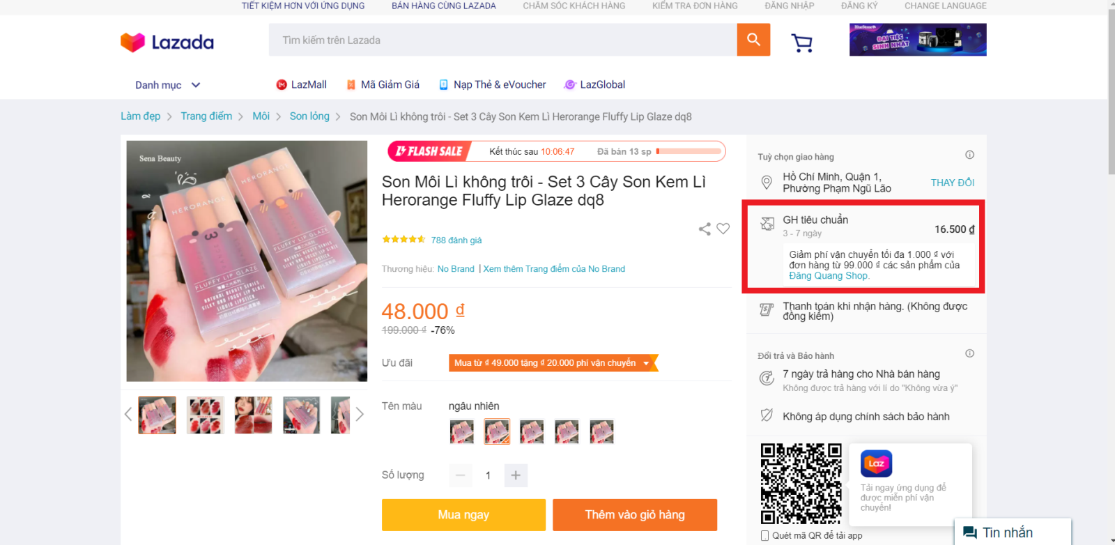 Giao hàng tiêu chuẩn thường miễn phí vận chuyển trong nội thành với đơn hàng từ 99.000đ còn ngoại thành là 150.000.