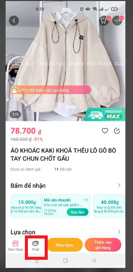 Chat với shop trên điện thoại