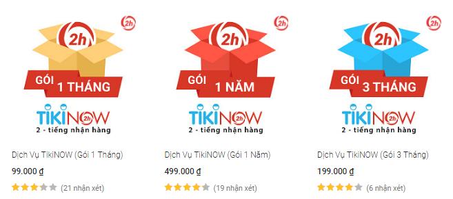 Hiện nay TikiNow đang có 3 gói dịch vụ được sử dụng: