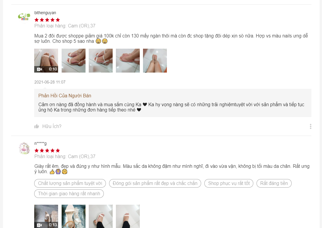 1. Xem đánh giá phản hồi của khách hàng đã mua
