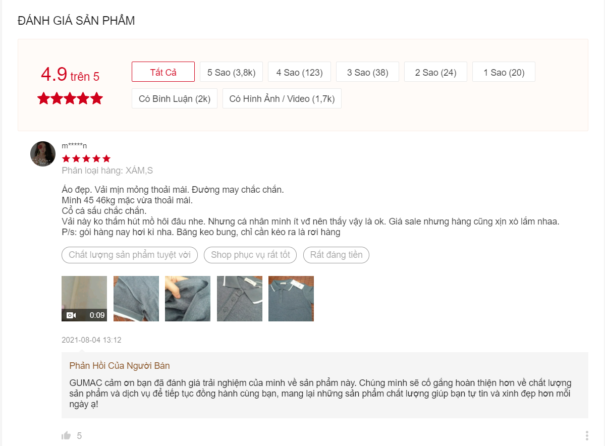 Những review, đánh giá mà shop có được là chỉ số trực quan nhất thể hiện được uy tín của gian hàng và chất lượng sản phẩm vì thế nó cũng là một trong những yếu tố ảnh hưởng rất lớn đến quyết định mua hàng của khách hàng.