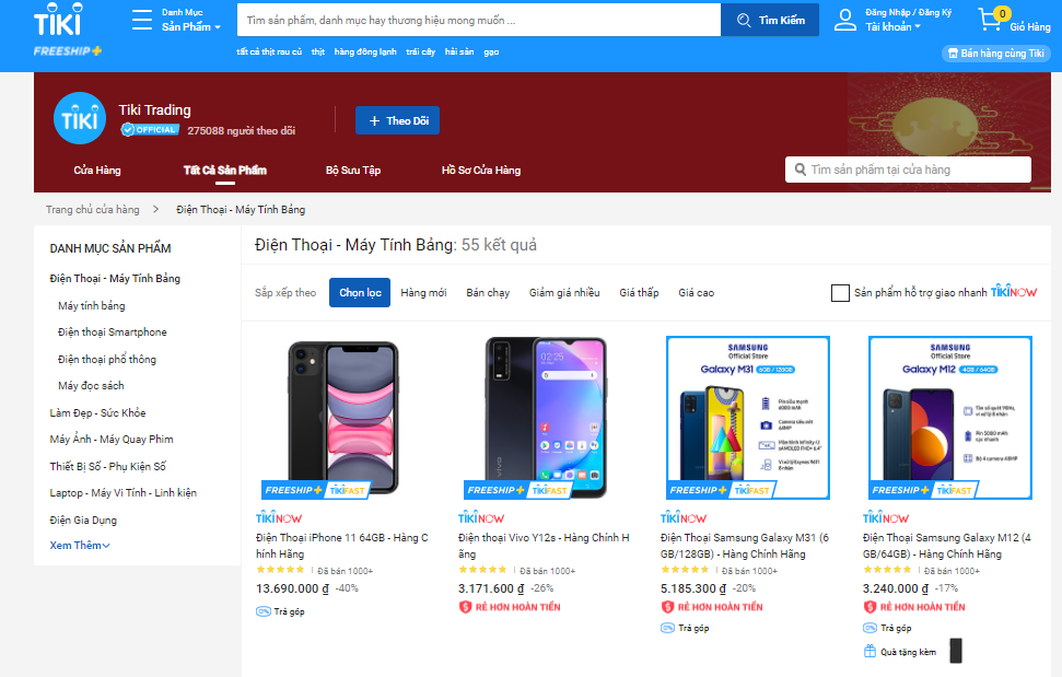 Hiện nay Tiki đã trở thành siêu thị mua sắm trực tuyến hàng đầu Việt Nam. Lúc đầu Tiki chủ yếu được xem là một trang cung cấp sách. Tuy nhiên đến năm 2019 đã trở thành cái tên xuất hiện khắp mọi nơi từ giới trẻ cho tới các chị em công sở hay các bà mẹ bỉm sữa…cung cấp nhiều sản phẩm khác nhau phục vụ mọi nhu cầu của khách hàng. Ngoài ra tỉ lệ đổi trả hàng hóa tại Tiki cực kì thấp, giá trị giao dịch của các nhà bán trên sàn Tiki tăng gấp 10 lần cùng kỳ năm ngoái. Điều này một lần nữa khẳng định Tiki chính là lựa chọn hàng đầu của khách hàng và các đối tác bán hàng online.