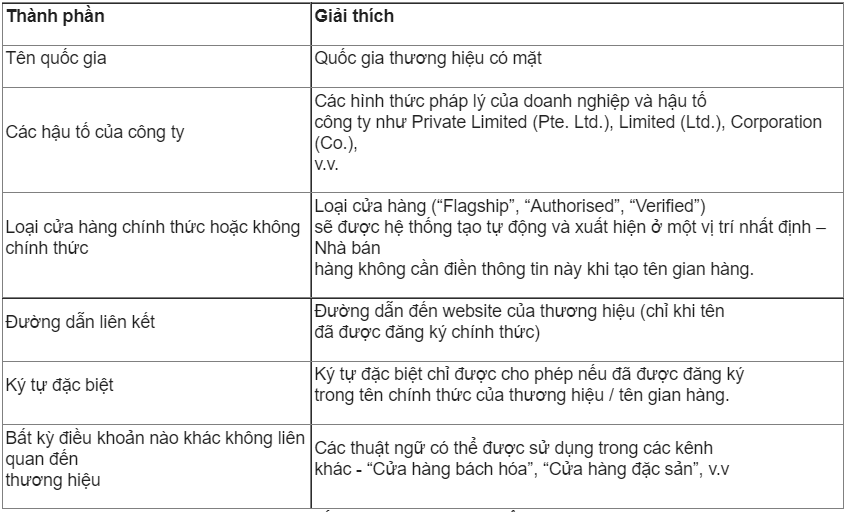 1. Những thành phần được xuất hiện và không được xuất hiện trong tên gian hàng Lazmall