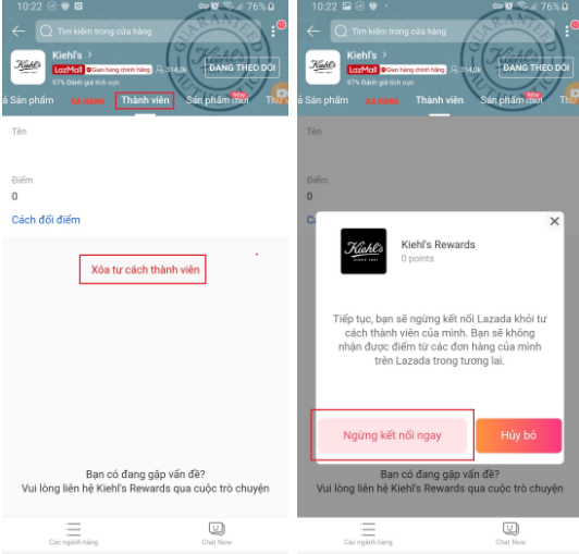 Vào trang gian hàng thương hiệu >> Thành viên >> Xóa tư cách thành viên.