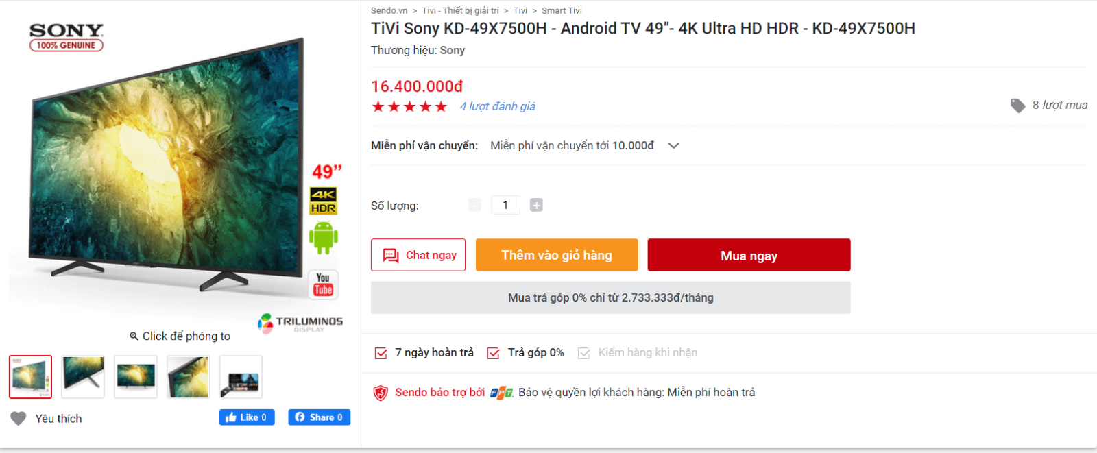 Tìm hiểu hình thức mua hàng trả góp 0% trên Sendo