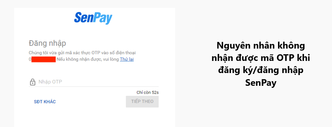 Nguyên nhân không nhận được mã OTP khi đăng ký và đăng nhập SenPay