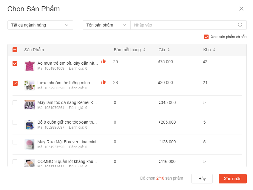 Trước khi chạy quảng cáo, bạn cần cập nhật đầy đủ tên, hình ảnh và mô tả của sản phẩm. Sau đó chọn sản phẩm có biểu tượng trong cửa sổ Chọn sản phẩm. Đây là các sản phẩm này được hệ thống gợi ý để thiết lập quảng cáo. Bởi vì các sản phẩm này có tỉ lệ chuyển đổi và doanh số cao rất dễ tiếp cận khách hàng và mang lại lợi nhuận nhanh chóng.