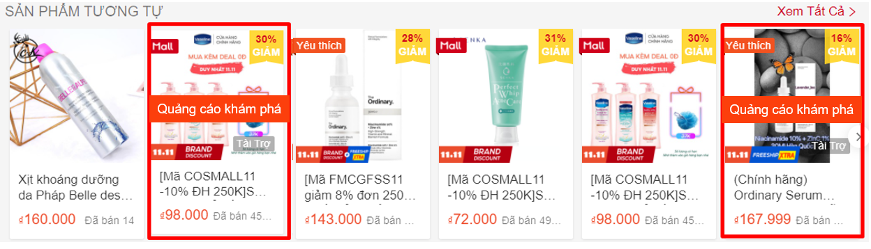 + Trong 100 vị trí đầu tiên ở mục Sản phẩm Tương tự tại Trang chi tiết sản phẩm, bạn sẽ thấy tối đa 21 sản phẩm quảng cáo được hiển thị. Vị trí chính xác sẽ thay đổi dựa trên việc tối ưu hóa liên tục hiệu quả quảng cáo.