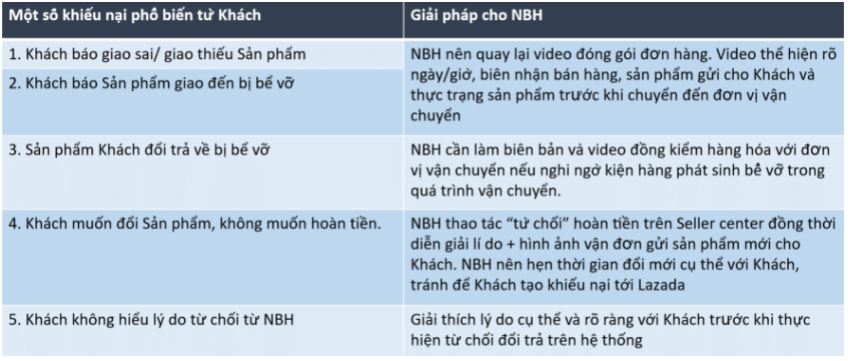 - Tại bước "NBH phản hồi Lazada”: Khi nhận được khiếu nại từ khách hàng Lazada sẽ gửi mail hoặc/và gọi điện thoại để yêu cầu NBH phản hồi/cung cấp bằng chứng. Khi NBH không phản hồi trong thời gian quy định (24h), bộ phận CSKH sẽ tự quyết định hướng xử lý.