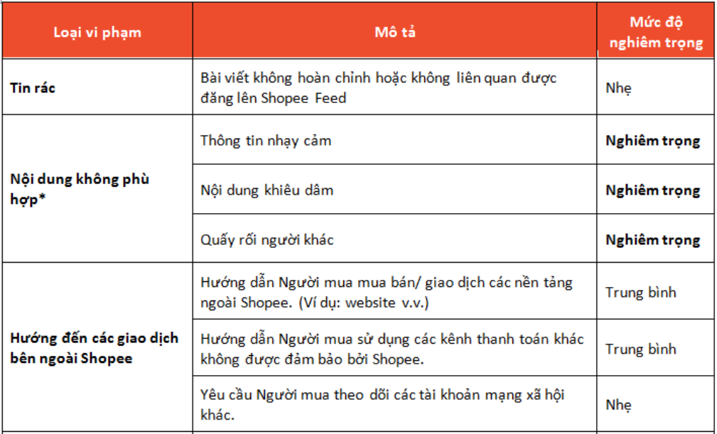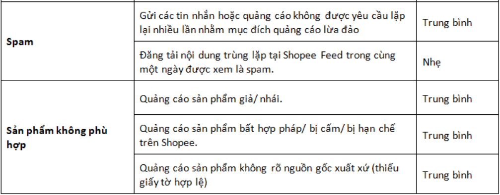 2. Các loại vi phạm áp dụng cho Shopee Feed