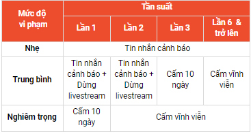 - Các buổi livestream cũng có thể bị ngừng ngay lập tức nếu vi phạm.