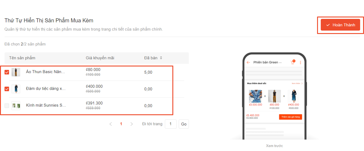 Chọn “Hoàn thành” để lưu lại 2 sản phẩm đã chọn.