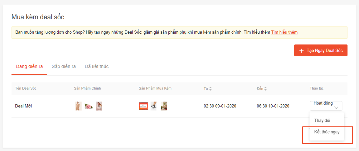 Kết thúc deal đang chạy