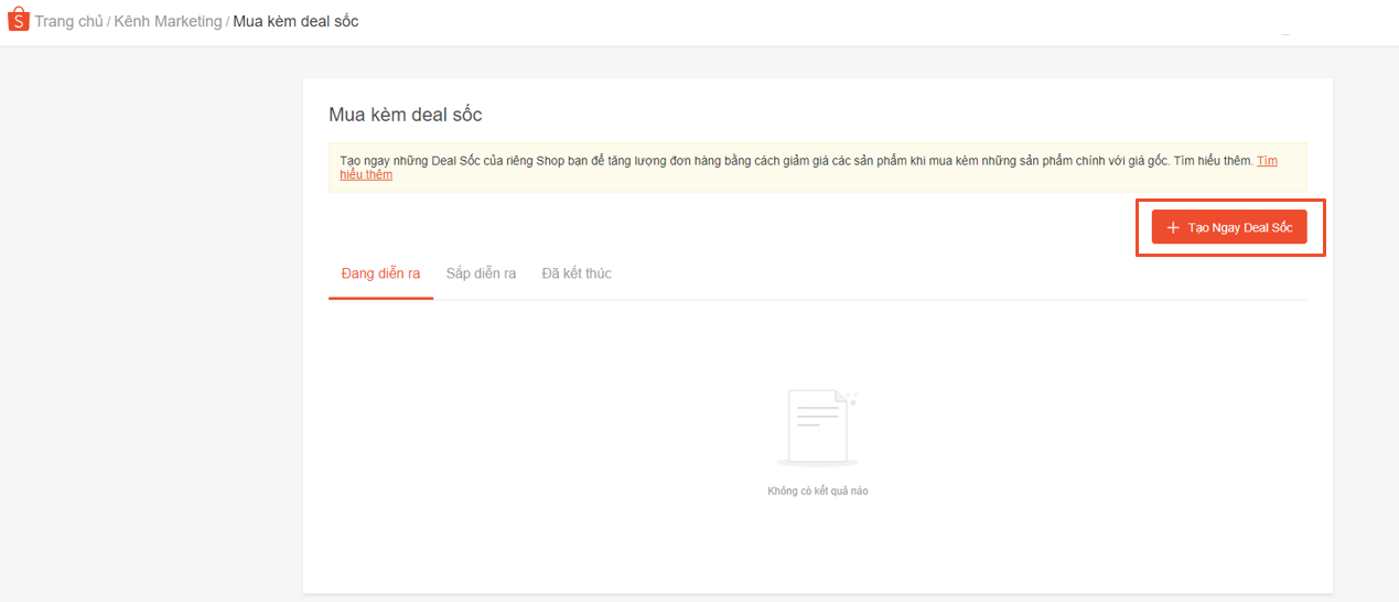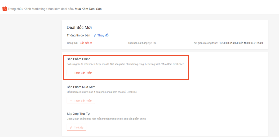 Khi đã tạo thành công, Người bán có thể xem chi tiết về chương trình tại trang Mua kèm deal sốc.